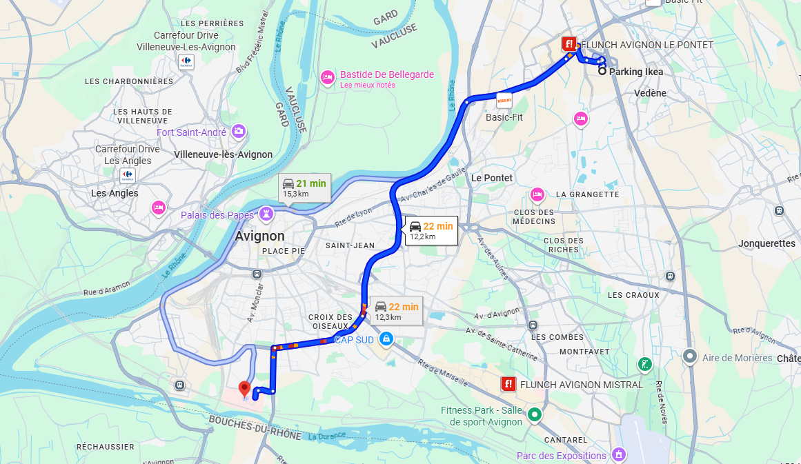 À Bordeaux, par exemple, le motard a mis 23 minutes pour parcourir un peu plus de 10 km, contre 37 minutes en voiture et 1 h 04 pour le piéton + transports en commun.