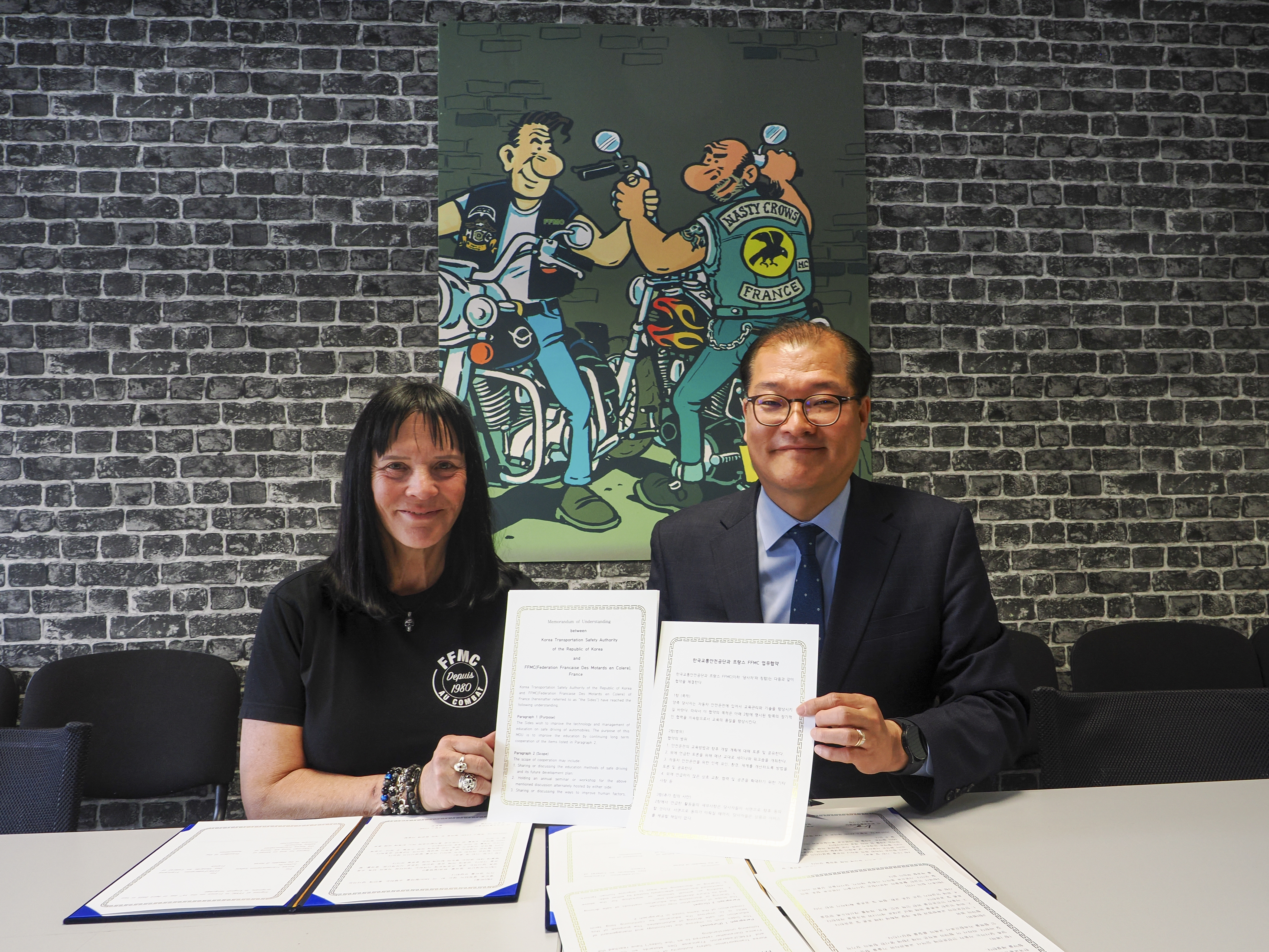 Le 16 avril 2025, au siège de la FFMC à Montreuil, un partenariat inédit a été signé entre la Fédération Française des Motards en Colère (FFMC) et la Korean Transportation Safety Authority (KOTSA). Ce protocole d’accord marque une étape dans la coopération internationale pour la prévention du risque à deux-roues motorisé.