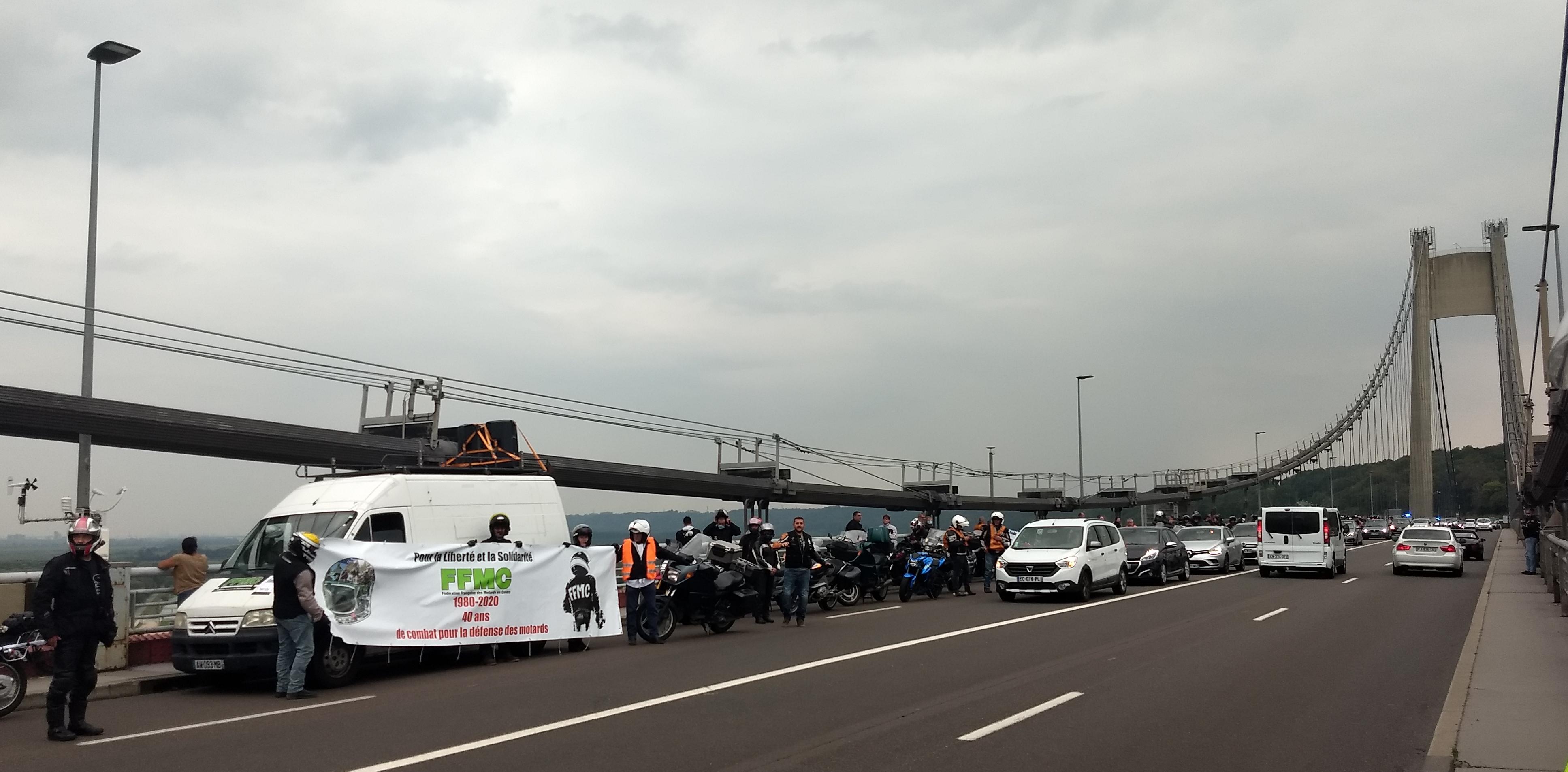 La manifestation s’est symboliquement terminée sur le pont de Tancarville, comme il y a quatre décennies.