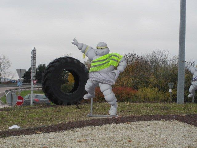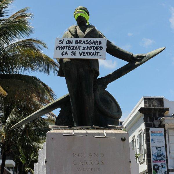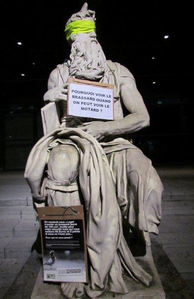 Bon nombre de statues, et symboles de la république ont été ainsi décorés de la même manière ainsi que l’Etat souhaite le faire à l’encontre des motards. Au motif de leur sécurité, les motards devraient porter 150 cm² de rétro-réfléchissant sous peine de perdre 2 points et 68 euros d’amende.