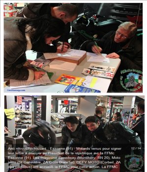 La FFMC demande à Manuel Valls le retrait de ce décret, promulgué sous le gouvernement précédent, et l’encourage à mettre en application le changement promis ce printemps, en particulier sur le partage de la route et la formation, indispensables à une politique de SR pérenne.