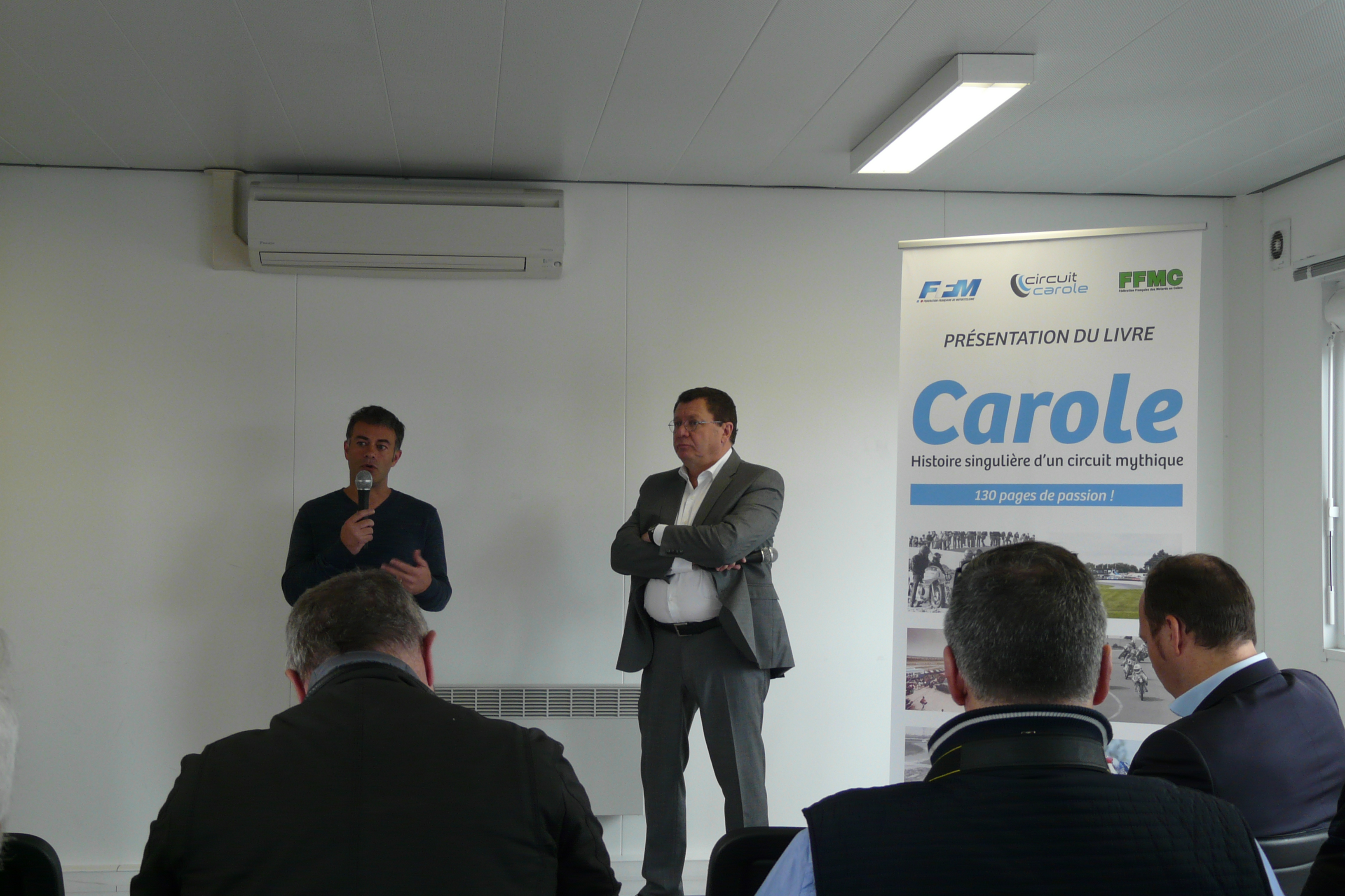 Le président de la FFM, Jacques BOLLE (à droite sur la photo), nous présente avec Zef Enault (au micro), qui l’a écrit, toute l’histoire de ce circuit mythique. D’entrée, et pour ceux qui le ne sauraient pas, rappelons que le mouvement motard que nous sommes vient en grande partie de la lutte des motards pour la création en 1979 de ce circuit après le décès de Carole Le FOL. La FFMC naitra de ce combat, ainsi que celui de la vignette moto et bien d’autres encore.