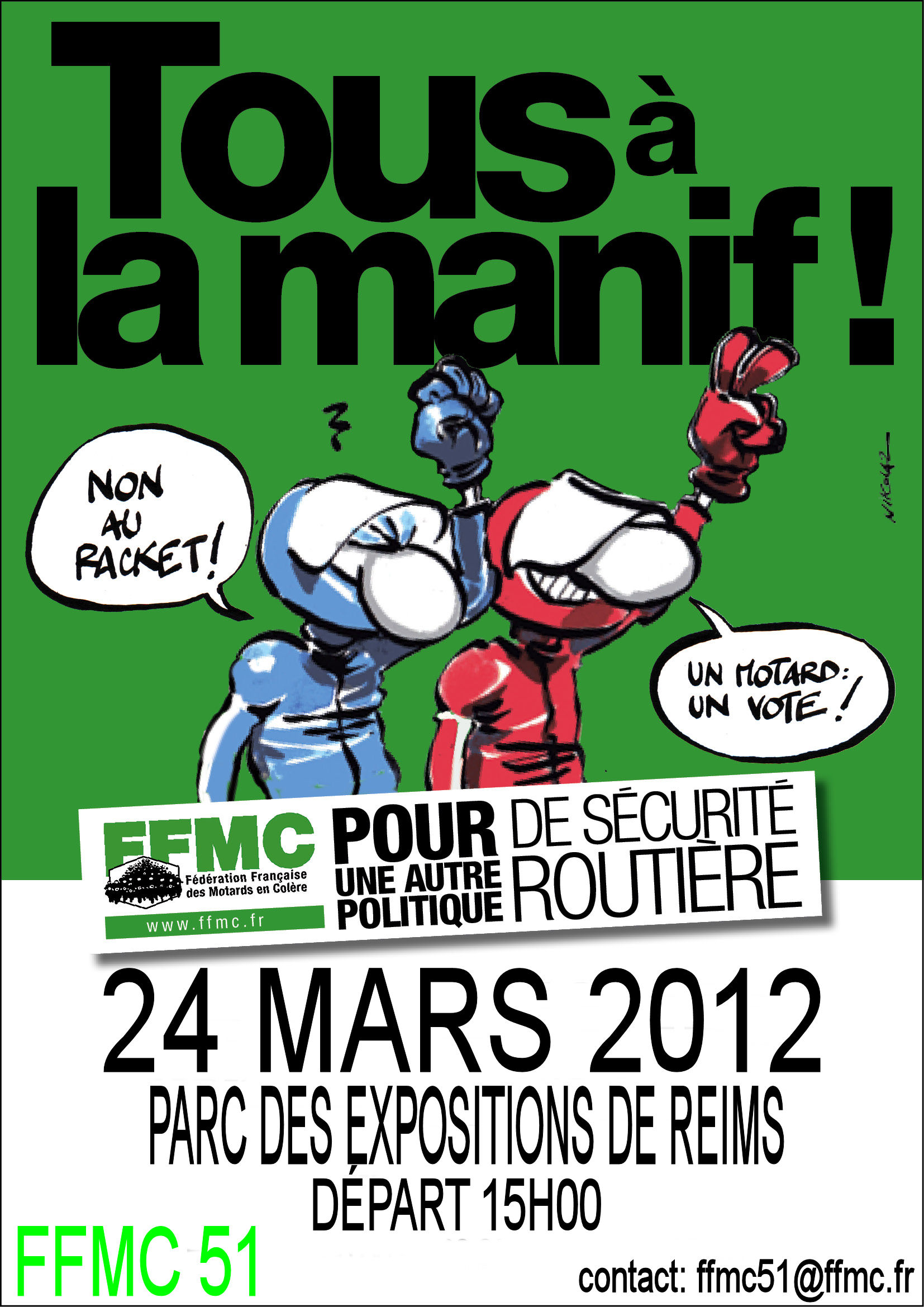 Les motards et motardes de la Marne, les Ardennes, la Meuse, l’ Aisne sont invités à rejoindre la cortège de la manifestation du 24 mars contre la politique globale de sécurité routière du gouvernement (et contre les mesures du décret du 03 janvier 2012)